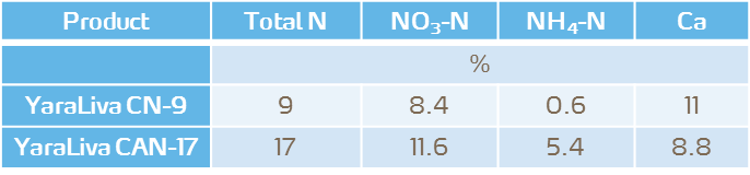 In addition, YaraLiva CAN-17 and YaraLiva CN-9 supply water soluble calcium which promotes stronger cell walls and more robust cell membranes which help plants avoid pathogens and reduce environmental stresses such as heat and cold. Moreover, calcium works hand-in-hand with potassium to help plants respond to water stress.