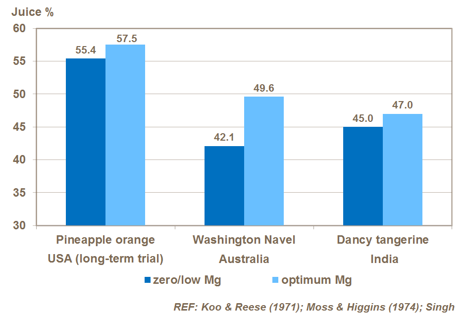 Increases in yield are largely due to increased fruit weight. However, optimum use of magnesium also boosts juice content of the fruit.
