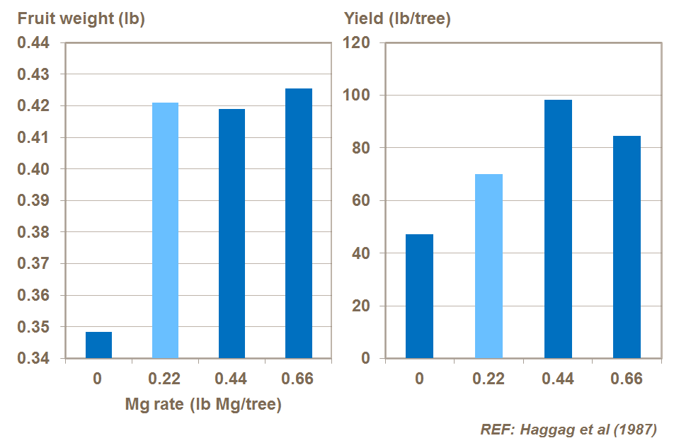 Magnesium applications have been proven to increase yield, as shown in Egyptian trials with navel oranges.