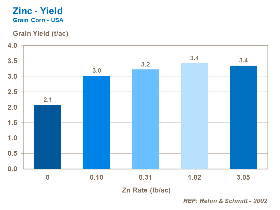 Zinc provides the largest yield responses in the greatest number of trials. The strong responses seen when zinc is applied to the seed, is largely due to zinc’s effects on early root and shoot growth and the subsequent increase of leaf production. However, high yield responses also come from foliar zinc applied to the leaf.