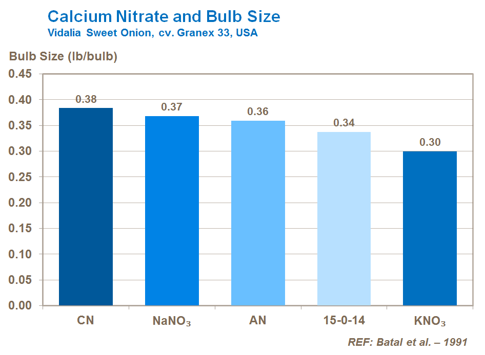 Trials with calcium nitrate confirm this is the most effective form of nitrogen for high yields and larger bulbs.