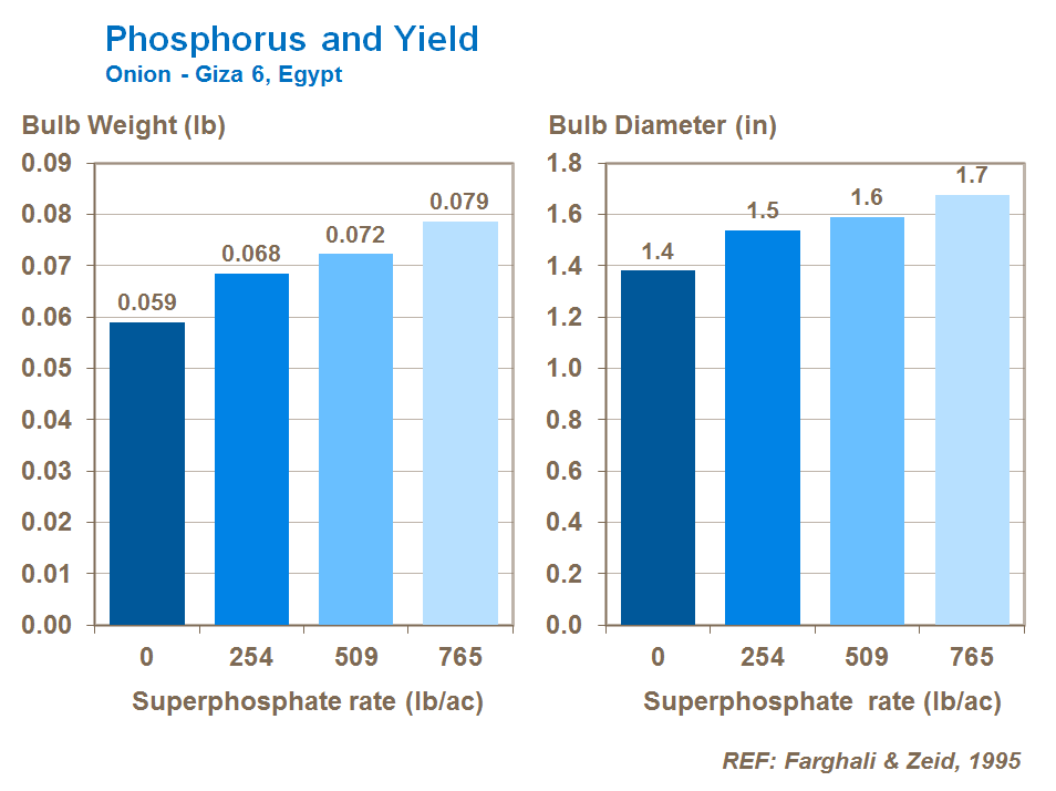 Where crops are grown on soils with very low natural phosphorus levels, higher rates are required to boost yield, thereby increasing bulb weight and size.
