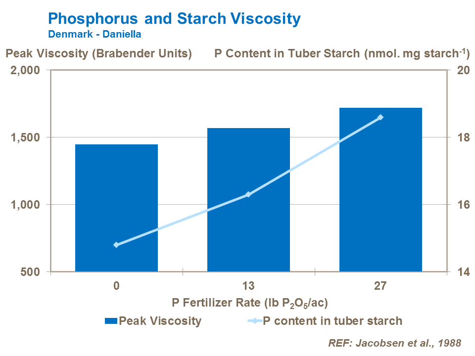 Phosphate fertilizer use can influence starch quality. By increasing the tuber P content, the viscosity of the gelatinized starch is also increased and the gelatinization temperature decreased.