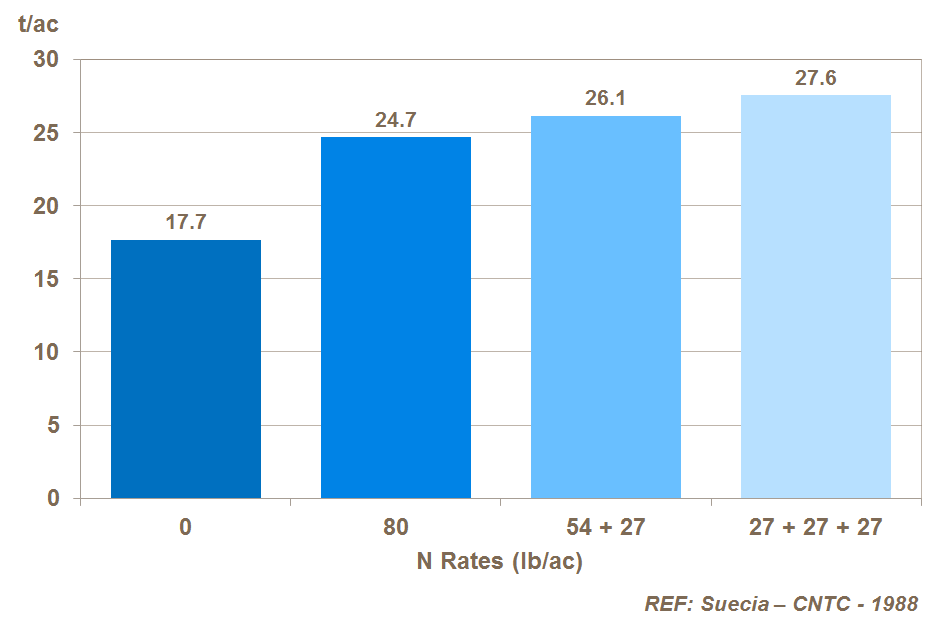 Where there are apparent yield responses to very high applications (>268lb/ac), split applications should be made for losses due to leaching.