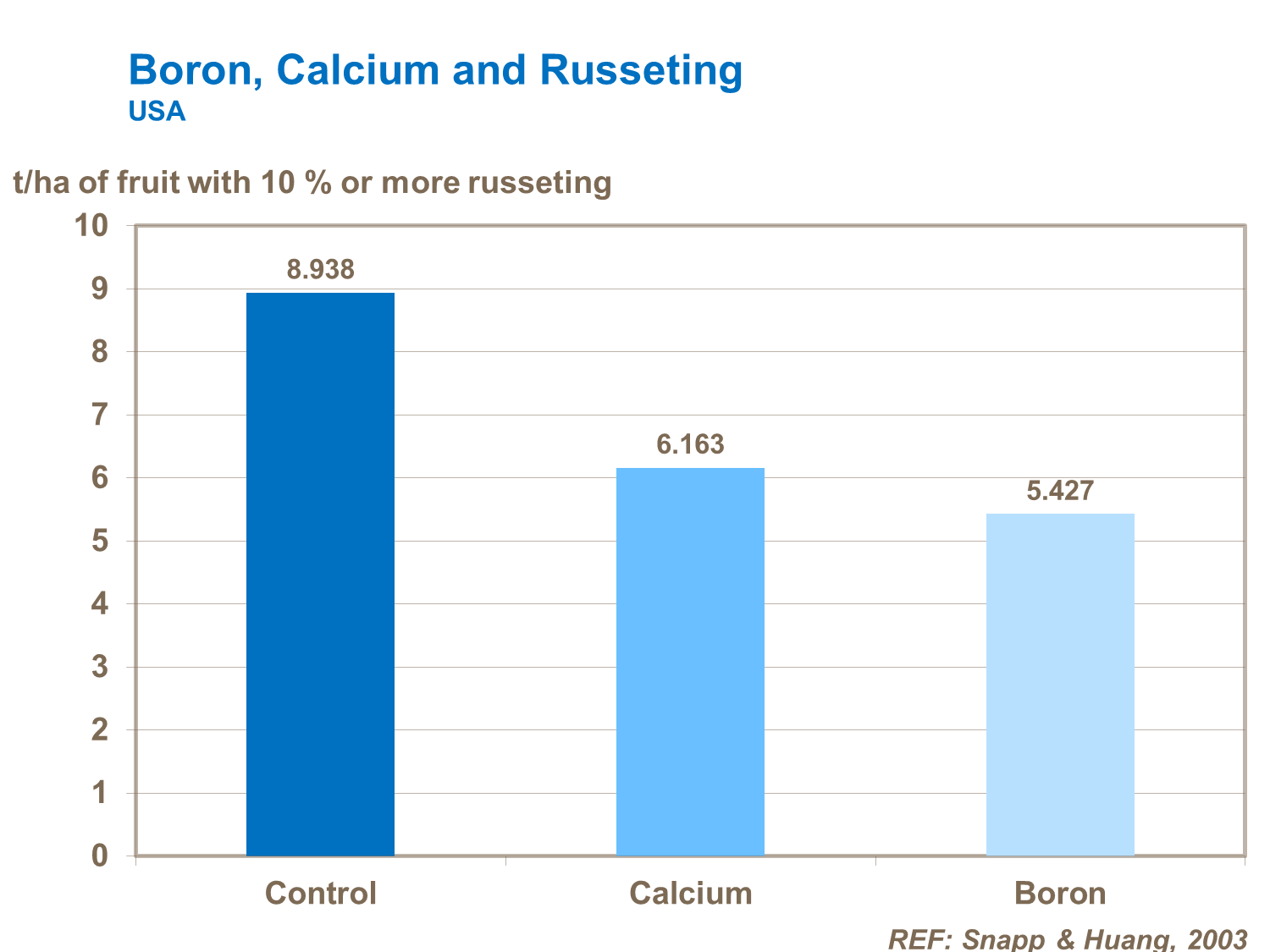 Lack of boron (and calcium) increases the incidence of russeting.