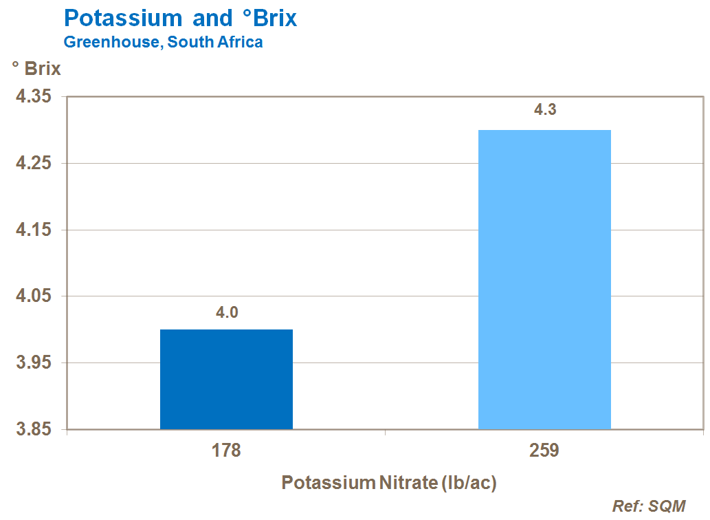 Potassium also increases TSS within the tomato. As well as improving processed tomato product quality, this has benefits in terms of improved taste and storage of fresh tomatoes.