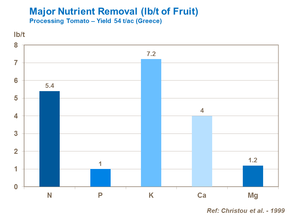 More potassium, nitrogen and calcium are removed by tomatoes than any other nutrient.