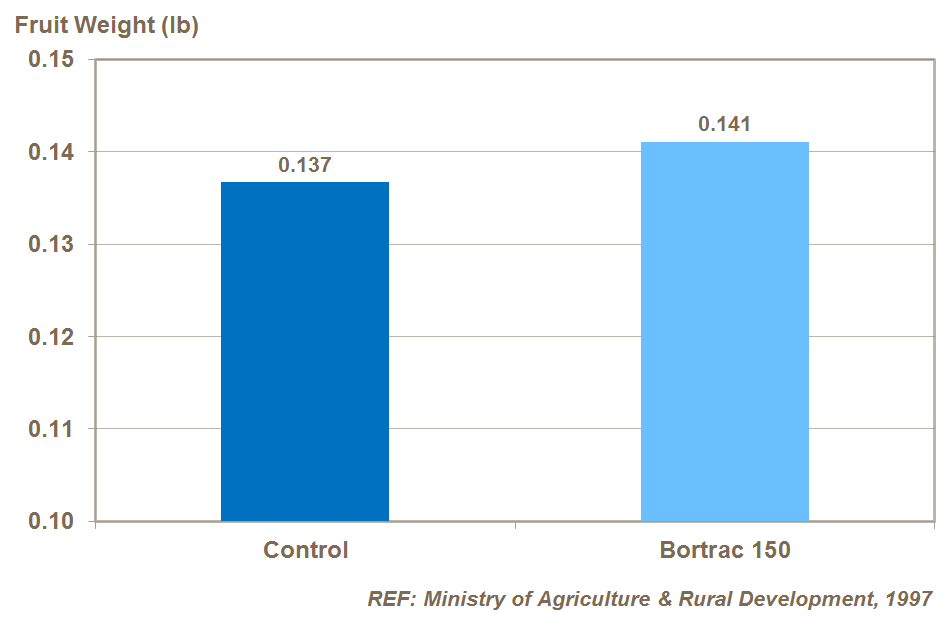 Boron also has a positive influence on the level of cracking and shelf life of the fruit, as USA trial shows. Any cracks on the fruit shoulder increase water loss and susceptibility to pathogen attack.