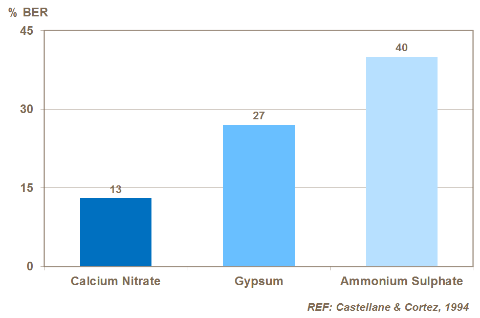As a general rule, fresh fruit with a calcium concentration of above 0.12% do not develop BER. The best way of ensuring good calcium supply is to use calcium nitrate as the calcium source (see data above from Turkey).