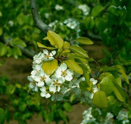 Flowers also show necrotic blotches.Later symptoms extend to older leaves.